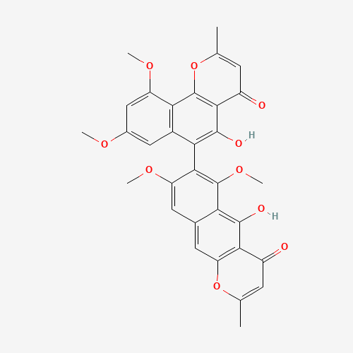 - Synonyms:asperpyrone C;491869-00-2;CHEMBL446958;CHEBI:133762;DTXSID801101372;(7R)-5-Hydroxy-7-(5-hydroxy-8,10-dimethoxy-2-methyl-4-oxo-4H-naphtho[1,2-b]pyran-6-yl)-6,8-dimethoxy-2-methyl-4H-naphtho[2,3-b]pyran-4-one;5-hydroxy-7-(5-hydroxy-8,10-dimethoxy-2-methyl-4-oxo-4H-naphtho[1,2-b]pyran-6-yl)-6,8-dimethoxy-2-methyl-4H-naphtho[2,3-b]pyran-4-one;5-hydroxy-7-(5-hydroxy-8,10-dimethoxy-2-methyl-4-oxobenzo[h]chromen-6-yl)-6,8-dimethoxy-2-methylbenzo[g]chromen-4-one