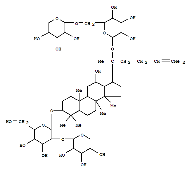 - 80321-67-1/b-D-Glucopyranoside, (3b,12b)-12-hydroxy-20-[(6-O-b-D-xylopyranosyl-b-D-glucopyranosyl)oxy]dammar-24-en-3-yl 2-O-b-D-xylopyranosyl- (9CI)