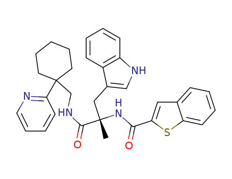benzo[b]thiophene-2-carboxylic acid {(S)-2-(1H-indol-3-yl)-1-methyl-1-[(1-pyridin-2-yl-cyclohexylmethyl)-carbamoyl]-ethyl}-amide(425640-02-4)