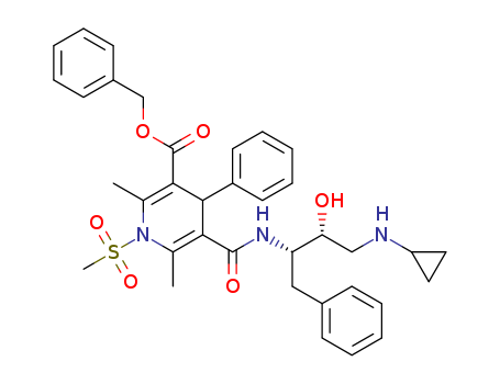 - Synonyms:benzyl 5-((2S,3R)-4-(cyclopropylamino)-3-hydroxy-1-phenylbutan-2-ylcarbamoyl)-2,6-dimethyl-1-(methylsulfonyl)-4-phenyl-1,4-dihydropyridine-3-carboxylate