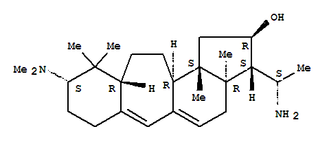 - Synonyms:B(9a)-Homo-19-nor-5a-pregna-9(11),9a-dien-16a-ol, 20a-amino-3b-(dimethylamino)-4,4,14-trimethyl-(8CI); B(9a)-Homo-19-norpregna-9(11),9a-dien-16-ol,20-amino-3-(dimethylamino)-4,4,14-trimethyl-, (3b,5a,16a,20S)-; Benzo[4,5]cyclohept[1,2-e]inden-2-ol,3-(1-aminoethyl)-9-(dimethylamino)-1,2,3,3a,4,7,8,9,10,10a,11,12,12a,12b-tetradecahydro-3a,10,10,12b-tetramethyl-,[2R-[2a,3b(S*),3ab,9b,10aa,12ab,12ba]]-; Buxaminol E