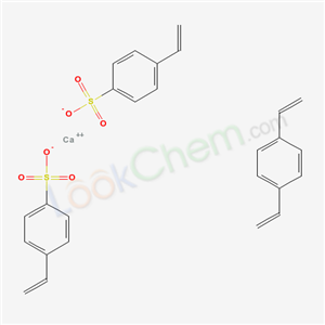 - Synonyms:benzenesulfonic acid, 4-ethenyl-, calcium salt, polymer with 1,4-diethenylbenze;Benzenesulfonic acid, 4-ethenyl-, calcium salt, polymer with 1,4-diethenylbenzene;benzenesulfonic acid, 4-ethenyl-, calcium salt, polymerwith 1,4-diethenylbenzene;Benzenesulfonic acid,4-ethenyl-,calcium salt,polymer with 1,4-diethenylbenzene