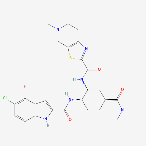 - Synonyms:SCHEMBL765308;CHEMBL604268;BDBM35751;DTXSID701099142;cis-1,2-diaminocyclohexane derivative, 8h;500571-94-8;N-[(1R,2S,5S)-2-[[(5-Chloro-4-fluoro-1H-indol-2-yl)carbonyl]amino]-5-[(dimethylamino)carbonyl]cyclohexyl]-4,5,6,7-tetrahydro-5-methylthiazolo[5,4-c]pyridine-2-carboxamide