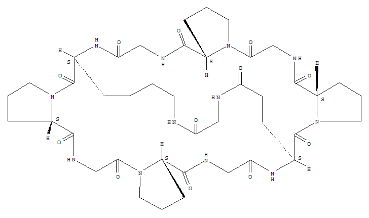 - 117178-64-0/cyclo(lysyl-prolyl-glycyl-prolyl-glycyl-glutamyl-prolyl-glycyl-prolyl-glycyl)cyclo(1epsilon-6-gamma)glycine