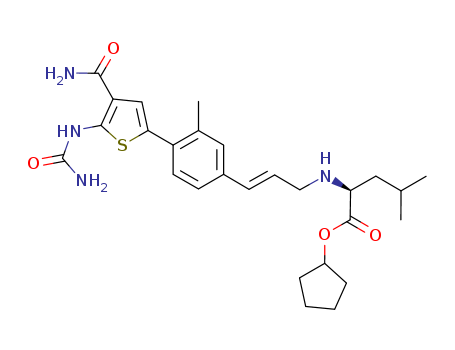 cyclopentyl N-[(2E)-3-{4-[4-carbamoyl-5-(carbamoylamino)thiophen-2-yl]-3-methylphenyl}prop-2-en-1-yl]-L-leucinate(1023700-18-6)