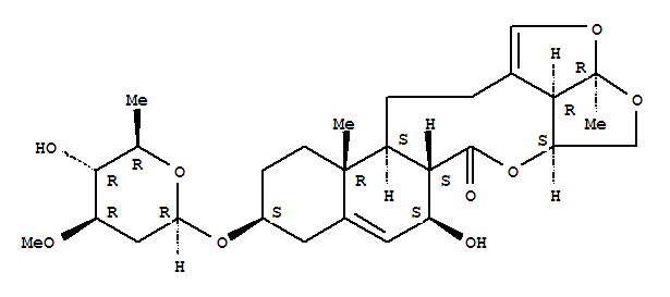 - Synonyms:6H-2,3,5-Trioxapentaleno[1',6':5,6,7]cyclonona[1,2-a]naphthalen-6-one,10-[(2,6-dideoxy-3-O-methyl-b-D-arabino-hexopyranosyl)oxy]-2a,4,4a,6a,7,9,10,11,12,12a,12b,13,14,14b-tetradecahydro-7-hydroxy-2a,12a-dimethyl-,[2aR-(2aR*,4aS*,6aS*,7S*,10S*,12aR*,12bS*,14bR*)]-; Cynapanoside A