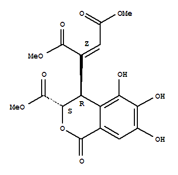 - Synonyms:2-Butenedioicacid, 2-[(3S,4R)-3,4-dihydro-5,6,7-trihydroxy-3-(methoxycarbonyl)-1-oxo-1H-2-benzopyran-4-yl]-,dimethyl ester, (2Z)- (9CI); 2-Butenedioic acid,2-[3,4-dihydro-5,6,7-trihydroxy-3-(methoxycarbonyl)-1-oxo-1H-2-benzopyran-4-yl]-,dimethyl ester, [3S-[3a,4b(Z)]]-; Trimethyl-3,4-dihydrochebulate