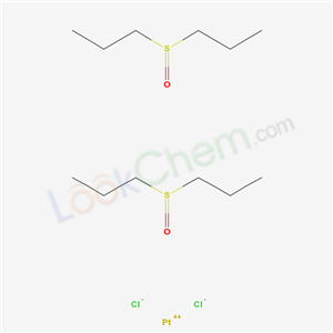 - Synonyms:Ptcl2-Pr-sulfoxide;cis-[Pt(di-n-propylsulfoxide)2Cl2];Dichlorobis(di-n-propyl sulfoxide)platinum(II);cis-dichlorobis(dipropyl sulfoxide)platinum;cis-[Pt(DPrSO)2Cl2];Platinum,dichlorobis(1,1'-sulfinylbis(propane)-S)-,(SP-4-1);cis-Pt(DPSO)2Cl2;