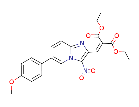 - Synonyms:diethyl 2-[6-(4-methoxyphenyl)-3-nitroimidazo[1,2-a]pyridin-2-ylmethylene]malonate