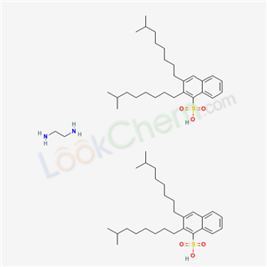 - Synonyms:Naphthalenesulfonic acid,diisononyl-,compd. with 1,2-ethanediamine (2:1);Diisononylnaphthalenesulfonic acid,compd. with 1,2-ethanediamine (2:1);EINECS 264-291-8;2,3-bis(7-methyloctyl)naphthalene-1-sulfonic acid-ethane-1,2-diamine(2:1);