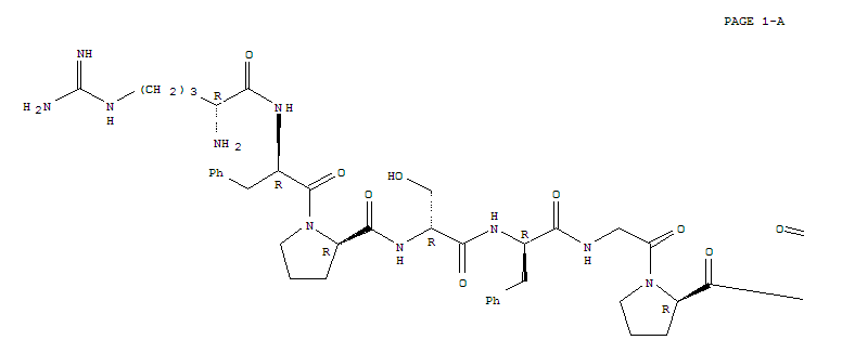 - Synonyms:enantio-Bradykinin,2-D-phenylalanine-4-D-serine-6-glycine-8-D-proline-; D-Arginine,D-arginyl-D-phenylalanyl-D-prolyl-D-seryl-D-phenylalanylglycyl-D-prolyl-D-prolyl-;D-Arginine,N2-[1-[1-[N-[N-[N-[1-(N-D-arginyl-D-phenylalanyl)-D-prolyl]-D-seryl]-D-phenylalanyl]glycyl]-D-prolyl]-D-prolyl]-