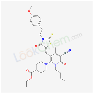 ethyl 1-[1-butyl-5-cyano-3-({3-[2-(4-methoxyphenyl)ethyl]-4-oxo-2-thioxo-1,3-thiazolidin-5-ylidene}methyl)-4-methyl-6-oxo-1,6-dihydropyridin-2-yl]piperidine-4-carboxylate(7065-07-8)