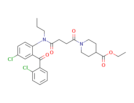 - Synonyms:ethyl 1-{4-[{4-chloro-2-[(2-chlorophenyl)carbonyl]-phenyl}(propyl)amino]-4-oxobutanoyl}piperidine-4-carboxylate