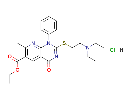 - Synonyms:Pyrido[2,3-d]pyrimidine-6-carboxylicacid, 2-[[2-(diethylamino)ethyl]thio]-1,4-dihydro-7-methyl-4-oxo-1-phenyl-,ethyl ester, monohydrochloride (9CI)