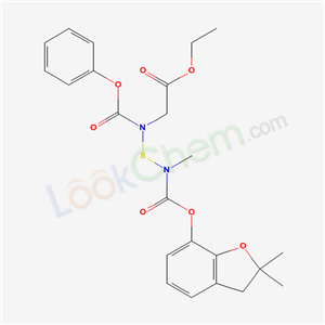 - Synonyms:ETHYL 2-[[(2,2-DIMETHYL-3H-BENZOFURAN-7-YL)OXYCARBONYL-METHYL-AMINO]SULFANYL-PHENOXYCARBONYL-AMINO]ACETATE;Glycine,N-(((((2,3-dihydro-2,2-dimethyl-7-benzofuranyl)oxy)carbonyl)methylamino)thio)-N-(phenoxycarbonyl)-,ethyl ester;