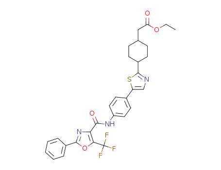 - Synonyms:ethyl 2-(4-(5-(4-(2-phenyl-5-(trifluoromethyl)oxazole-4-carboxamido)phenyl)thiazol-2-yl)cyclohexyl)acetate