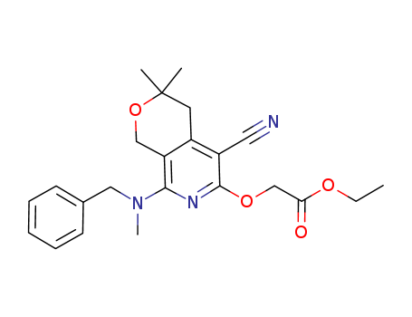 - Synonyms:ethyl 2-{8-[benzyl(methyl)amino]-5-cyano-3,3-dimethyl-3,4-dihydro-1H-pyrano[3,4-c]pyridin-6-yloxy}acetate