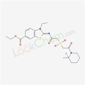 ethyl (2Z)-3-ethyl-2-[({[2-(2-methylpiperidin-1-yl)-2-oxoethyl]sulfonyl}acetyl)imino]-2,3-dihydro-1,3-benzothiazole-6-carboxylate(6251-18-9)