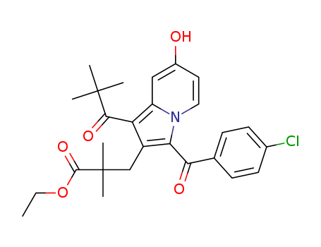 - Synonyms:ethyl 3-{3-[(4-chlorophenyl)carbonyl]-1-(2,2-dimethylpropanoyl)-7-hydroxyindolizin-2-yl}-2,2-dimethylpropanoate