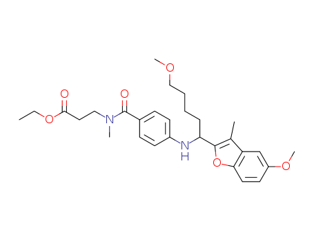 - Synonyms:ethyl 3-{[(4-{[5-methoxy-1-(5-methoxy-3-methyl-1-benzofuran-2-yl)pentyl]amino}phenyl)carbonyl](methyl)amino}propanoate