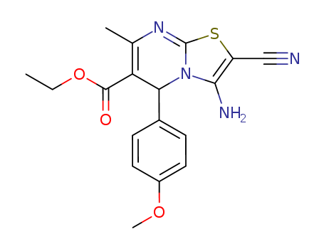 - Synonyms:ethyl 3-amino-2-cyano-5-(4-methoxyphenyl)-7-methyl-5H-thiazolo<3,2-a>pyrimidine-6-carboxylate