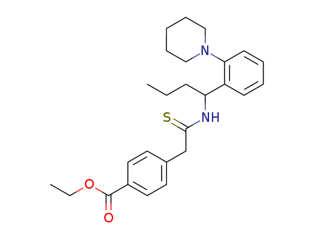 - Synonyms:ethyl 4-<2-<<1-<2-(1-piperidinyl)phenyl>butyl>amino>-2-thionoethyl>-benzoate