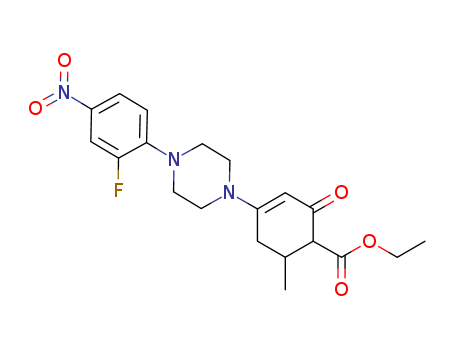 - Name: ethyl 4-(4-(2-fluoro-4-nitrophenyl)piperazin-1-yl)-6-methyl-2-oxocyclohex-3-ene-1-carboxylate