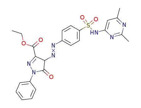 - Synonyms:2-Pyrazoline-3-carboxylicacid, 4-[[p-[(2,6-dimethyl-4-pyrimidinyl)sulfamoyl]phenyl]azo]-5-oxo-1-phenyl-,ethyl ester (8CI); NSC 114373