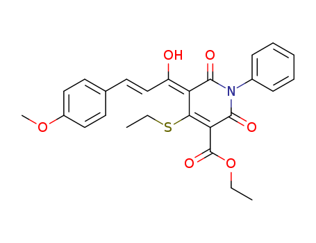 - Synonyms:ethyl 4-(ethylthio)-5-((Z)-1-hydroxy-3-(4-methoxyphenyl)allylidene)-2,6-dioxo-1-phenyl-1,2,5,6-tetrahydropyridine-3-carboxylate