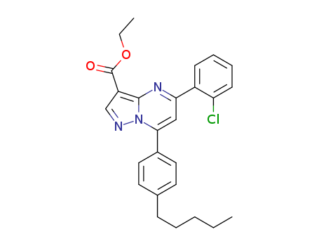 - Synonyms:ethyl 5-(2-chlorophenyl)-7-(4-pentylphenyl)pyrazolo[1,5-a]pyrimidine-3-carboxylate