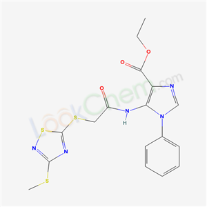 ethyl 5-[({[3-(methylsulfanyl)-1,2,4-thiadiazol-5-yl]sulfanyl}acetyl)amino]-1-phenyl-1H-imidazole-4-carboxylate(5481-74-3)