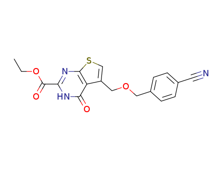 - Synonyms:ethyl 5-({[(4-cyanophenyl)methyl]oxy}methyl)-4-oxo-3,4-dihydrothieno[2,3-d]pyrimidine-2-carboxylate