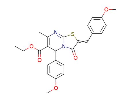 - Synonyms:ethyl 5-(4-methoxyphenyl)-2-(4-methoxyphenylmethylene)-7-methyl-3-oxo-2,3-dihydro-5H-thiazolo<3,2-a>pyrimidine-6-carboxylate