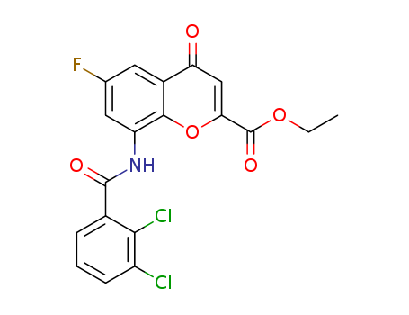 - Synonyms:ethyl 8-(2,3-dichlorobenzamido)-6-fluoro-4-oxo-4H-chromene-2-carboxylate