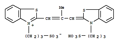 - Synonyms:Benzothiazolium,2-[2-methyl-3-[3-(3-sulfopropyl)-2(3H)-benzothiazolylidene]-1-propenyl]-3-(3-sulfopropyl)-,hydroxide, inner salt; Benzothiazolium,2-[2-methyl-3-[3-(3-sulfopropyl)-2(3H)-benzothiazolylidene]-1-propenyl]-3-(3-sulfopropyl)-,inner salt (9CI); Benzothiazolium, 2-[2-methyl-3-[3-(3-sulfopropyl)-2-benzothiazolinylidene]propenyl]-3-(3-sulfopropyl)-,hydroxide, inner salt (8CI); Thiacarbocyanine hydroxide,anhydro-3,3'-disulfopropyl-9-methyl- (8CI);3,3'-Disulfopropyl-9-methylthiacarbocyanine betaine; NK 2012; Thiacarbocyanine betaine,3,3'-disulfopropyl-9-methyl-