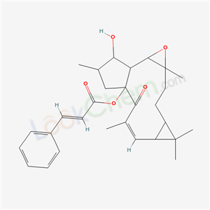 - Synonyms:1a,1b,2,3,4,5,7a,8,8a,9,10,10a,-Dodecahydro-2-hydroxy-3,6,7,7,10a-pentamethyl-5-oxo-4aH-cyclopenta(3,4)cyclopropa(8,9)cyclounadec(1,2-b)oxiren-4a-yl ester;2-Propenoic acid,3-phenyl-,1a,1b,2,3,4,5,7a,8,8a,9,10,10a-dodecahydro-2-hydroxy-3,6,8,8,10a-pentamethyl-5-oxo-4aH-cyclopenta(3,4)cyclopropa(8,9)cycloundec(1,2-b)oxiren-4a-yl ester,(1aS-(1aR*,1bR*,2R*,3R*,4aS*(E),6E,7aS*,8aR*,10aS*));