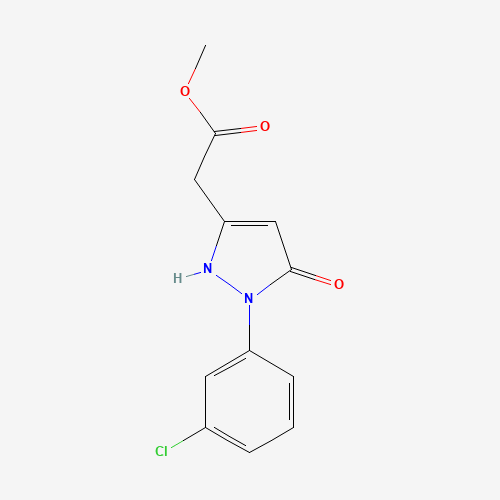 - Synonyms:methyl [1-(3-chlorophenyl)-5-hydroxy-1H-pyrazol-3-yl]acetate;1158589-04-8;852956-37-7;methyl [1-(3-chlorophenyl)-5-oxo-2,5-dihydro-1H-pyrazol-3-yl]acetate;Methyl 2-(1-(3-chlorophenyl)-5-hydroxy-1H-pyrazol-3-yl)acetate;methyl 2-[1-(3-chlorophenyl)-5-oxo-2,5-dihydro-1H-pyrazol-3-yl]acetate;methyl 2-[2-(3-chlorophenyl)-3-oxo-1H-pyrazol-5-yl]acetate;Methyl 2-(1-(3-chlorophenyl)-5-oxo-2,5-dihydro-1H-pyrazol-3-yl)acetate;methyl 2-[1-(3-chlorophenyl)-5-hydroxy-1H-pyrazol-3-yl]acetate;starbld0023982;DTXSID001167922;MFCD12027023;AKOS005171396;LS-01945;CS-0233290;CS-0364216;EN300-13234;Z89283958;Methyl 1-(3-chlorophenyl)-2,5-dihydro-5-oxo-1H-pyrazole-3-acetate