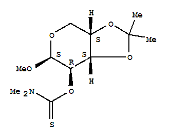 - Synonyms:Arabinopyranoside,methyl 3,4-O-isopropylidene-, dimethylthiocarbamate, b-L- (8CI);4H-1,3-Dioxolo[4,5-c]pyran, b-L-arabinopyranoside deriv.; Carbamic acid, dimethylthio-, O-ester withmethyl 3,4-O-isopropylidene-b-L-arabinopyranoside; NSC 98521