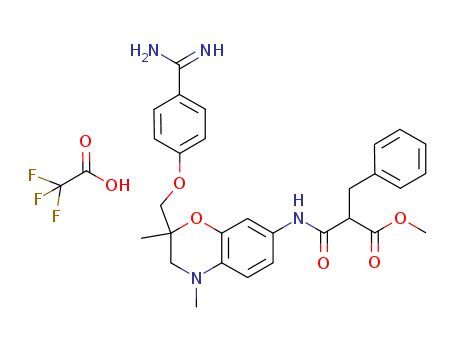 - Synonyms:methyl 2-benzyl-3-{2-[(4-carbamimidoylphenoxy)methyl]-2,4-dimethyl-3,4-dihydro-2H-1,4-benzoxazin-7-ylamino}-3-oxopropanoate trifluoroacetate