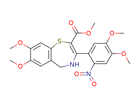 - Synonyms:methyl 3-(2-nitro-3,4-dimethoxyphenyl)-4,5-dihydro-7,8-dimethoxy-1,4-benzothiazepine-2-carboxylate