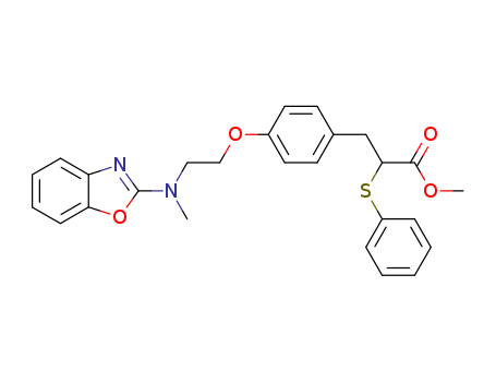 - Synonyms:methyl 3-[4-[2-[N-(2-benzoxazolyl)-N-methylamino]ethoxy]phenyl]-2-(phenylthio)propanoate