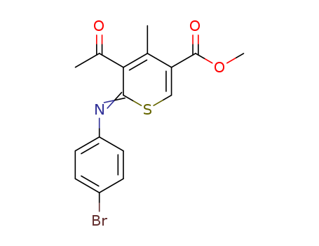 - Synonyms:methyl 3-acetyl-2-(4-bromophenylimino)-4-methyl-2H-thiopyran-5-carboxylate