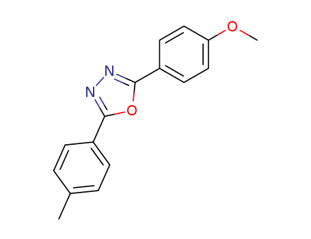 - Synonyms:2-(4-methoxyphenyl)-5-p-tolyl-1,3,4-oxadiazole;2-p-Tolyl-5-<4-methoxy-phenyl>-1,3,4-oxdiazol;2-(p-Tolyl)-5-(4-methoxy-phenyl)-1,3,4-oxadiazol;2-(4-Methoxy-phenyl)-5-p-tolyl-[1,3,4]oxadiazole;2-(p-methoxyphenyl)-5-(p-tolyl)-1,3,4-oxadiazole;2-(4-methoxyphenyl)-5-(4-methylphenyl)-1,3,4-oxadiazole;