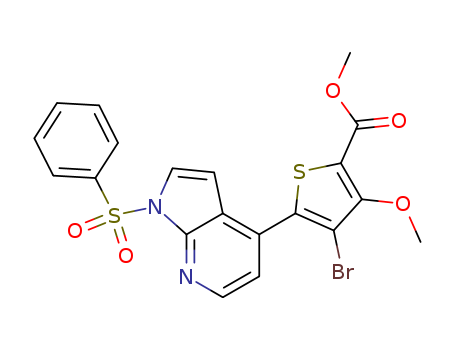- Synonyms:methyl 4-bromo-3-(methyloxy)-5-[1-(phenylsulfonyl)-1H-pyrrolo[2,3-b]pyridin-4-yl]-2-thiophenecarboxylate