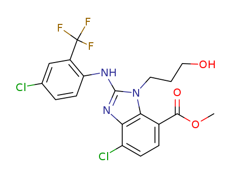 - Synonyms:methyl 4-chloro-2-{[4-chloro-2-(trifluoromethyl)phenyl]amino}-1-(3-hydroxypropyl)-1H-benzimidazole-7-carboxylate