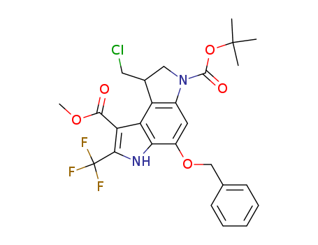 - Synonyms:methyl 5-benzyloxy-3-t-butoxycarbonyl-1-chloromethyl-7-trifluoromethyl-1,2,3,6-tetrahydropyrrolo[3,2-e]indole-8-carboxylate