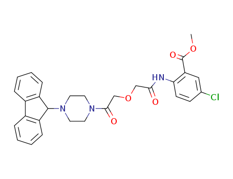 - Synonyms:methyl 5-chloro-2-[({2-[4-(9H-fluoren-9-yl)piperazin-1-yl]-2-oxoethoxy}acetyl)amino]benzoate