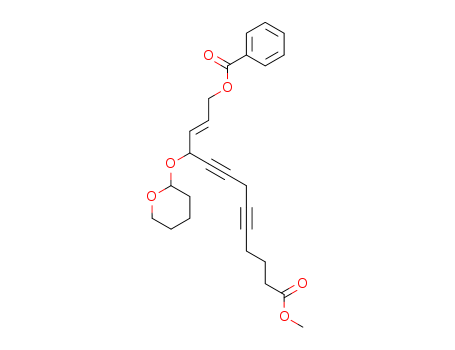 - Synonyms:methyl rac-13-benzoyloxy-10-(tetrahydropyranyloxy)tridec-11(E)-ene-5,8-diynoate
