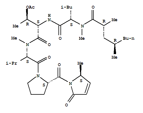 - Synonyms:L-Threoninamide,N-[(2R,4R)-2,4-dimethyl-1-oxooctyl]-N-methyl-L-leucyl-N-[(1S)-1-[[(2S)-2-[[(2S)-2,5-dihydro-2-methyl-5-oxo-1H-pyrrol-1-yl]carbonyl]-1-pyrrolidinyl]carbonyl]-2-methylpropyl]-N-methyl-,acetate (ester) (9CI); Microcolin B