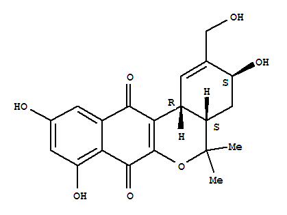 - Synonyms:4H-Benzo[d]naphtho[2,3-b]pyran-7,12-dione,3,4a,5,12b-tetrahydro-3,8,10-trihydroxy-2-(hydroxymethyl)-5,5-dimethyl-, [3S-(3a,4aa,12ba)]-; Naphthgeranin C; Naphthgeranine C